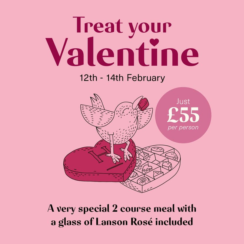 Celebrate Valentine’s at The Jolly Farmer with our indulgent 2 course set menu, featuring beautifully crafted dishes and a glass of Lanson Rosé for just £55 per person.